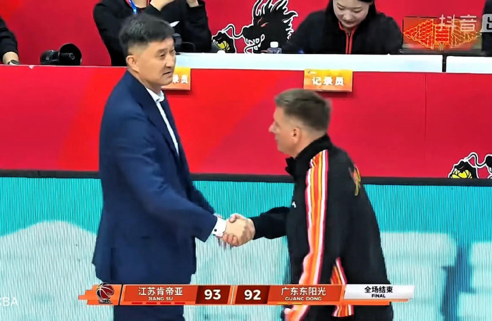 江苏队用掉了最后一个暂停。暂停回来,江苏队前场发边线球。庞峥麟作为第一接应点,吸引了广东队绝大部分的防守注意力。千钧一发之际,庞峥麟冷静地将球分给了埋伏在右侧底角、被短暂放空的锋线球员吴羽佳。吴羽佳接球、起跳、出手,动作一气呵成,篮球在空中飞行,终场哨声随即响起,而球——应声入网,三分有效!93-92!江苏队完成了不可思议的绝杀逆转!整个球场瞬间陷入沸腾,江苏队替补席球员疯狂冲入场内庆祝,而广东队将士则呆立当场,难以置信。广东队最后2秒仓促出手三分不中,只得吞下失利的苦果。